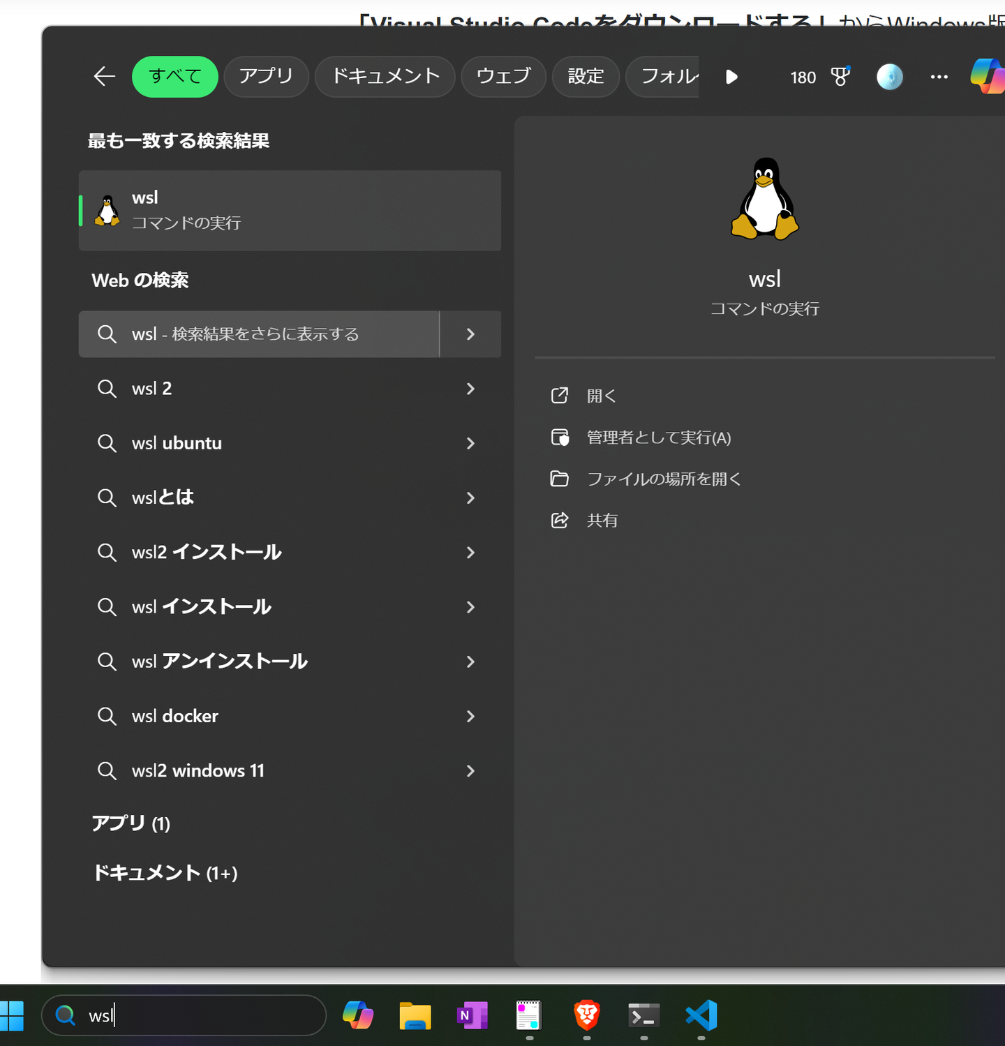 インストールが終わったら、検索から 「Ubuntu」 もしくは 「WSL(コマンドの実行)」 を選べばLinuxが立ち上がります。初回はrootユーザのパスワード等の入力を求められます。