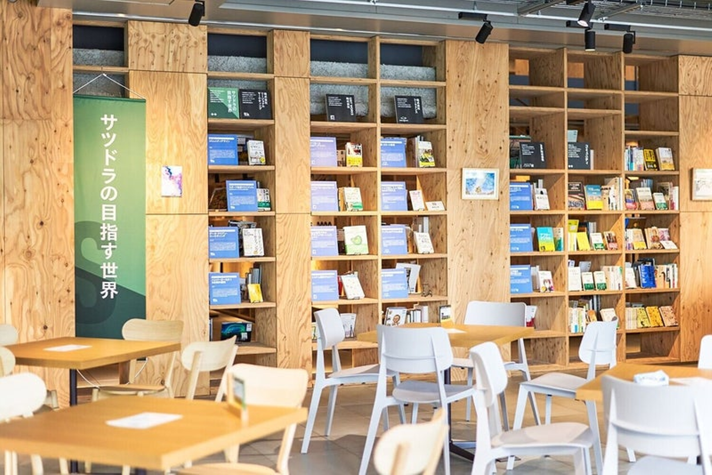 2020年9月に移転した新社屋。1Fにサツドラの店舗を構え、2Fを地域の人たちが集う場「EZO HUB SAPPORO」と定義。シェアオフィスやブックラウンジ、コミュニケーションスペースなどがある。