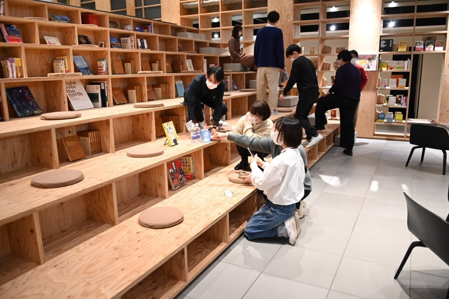 BOOK LOUNGEやHUBに設置された会場や小道具を使って、映え写真撮りに挑戦していました。