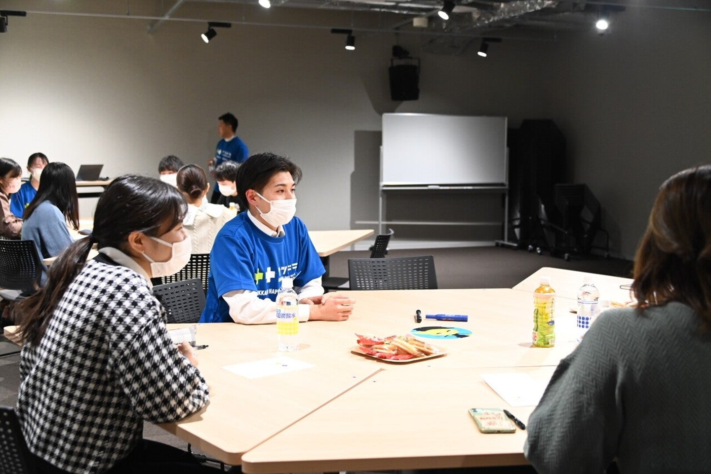 各卓では、先輩社員に地方での働き方や楽しみ、やりがいなどを聞いている内定者もいれば、和気あいあいと雑談を楽しみ、親睦を深めている卓も見られました。