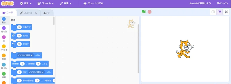 代表的なヴィジュアルプログラミングのScratch(スクラッチ)画面