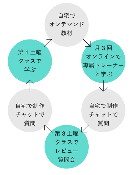 また、G’s ACADEMYの最強講師陣が作った動画教材で自宅でもプログラミングを学ぶことができ、わからないことがあればチャットツールでトレーナーに何度でも質問が可能です!
