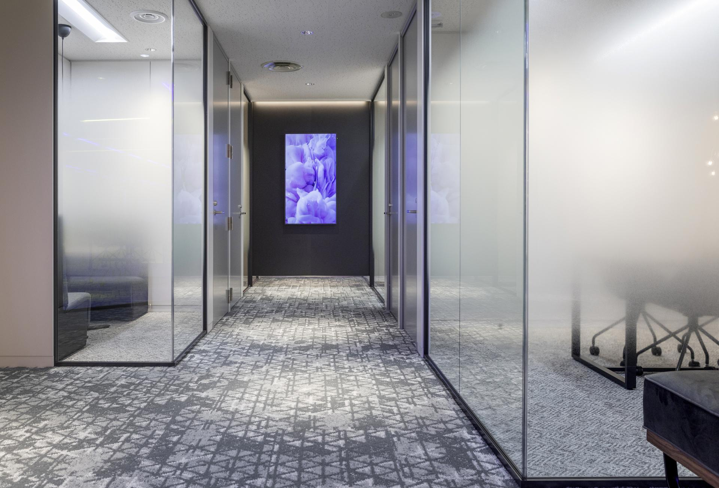 業務内容の特性として、来社での打ち合わせが多く、社内には会議室を合計8つ用意しております。