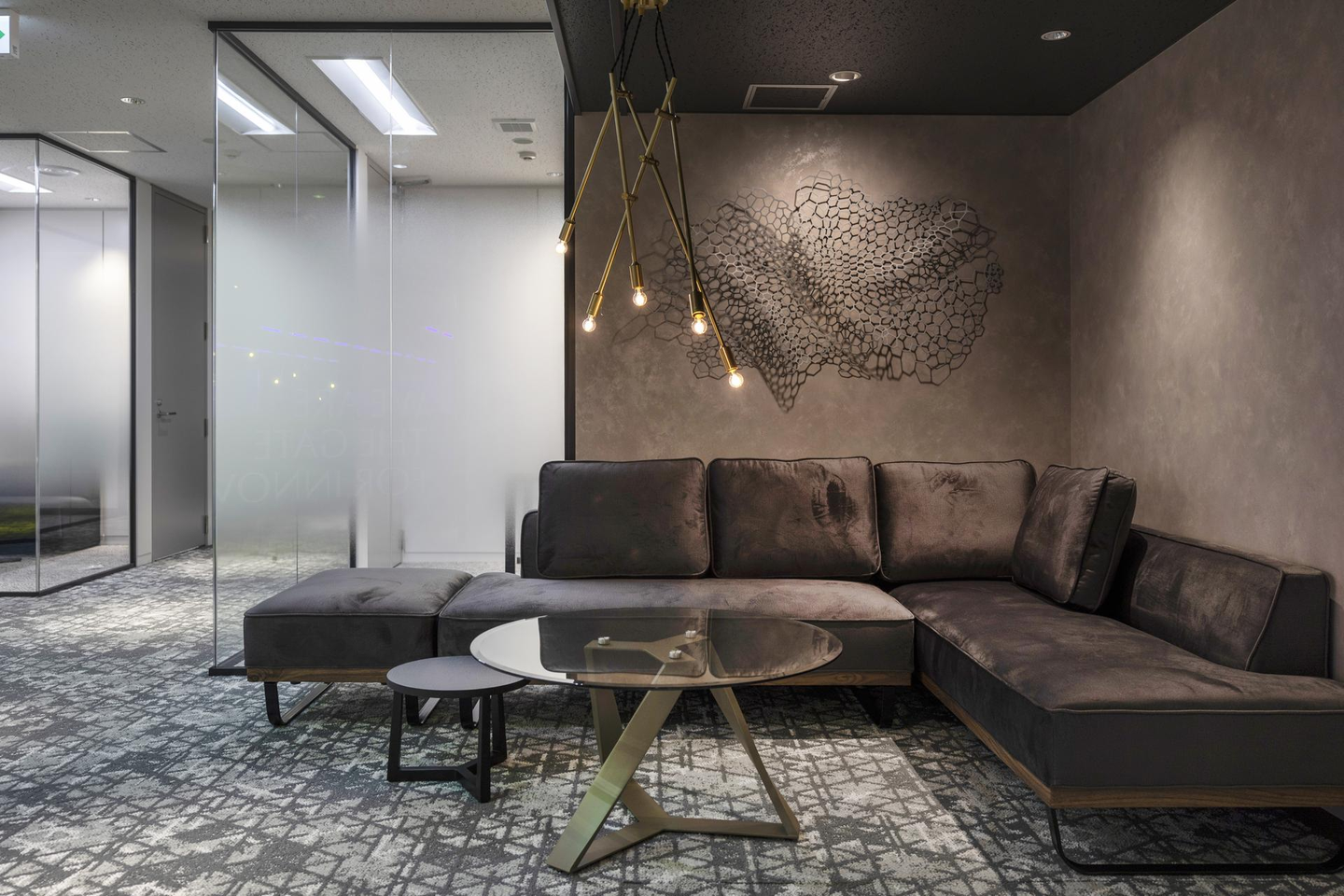 受付からエントランスに進むと、「WE ARE THE GATE FOR INNOVATORS」という私たちの決意がウォールアートになっております。