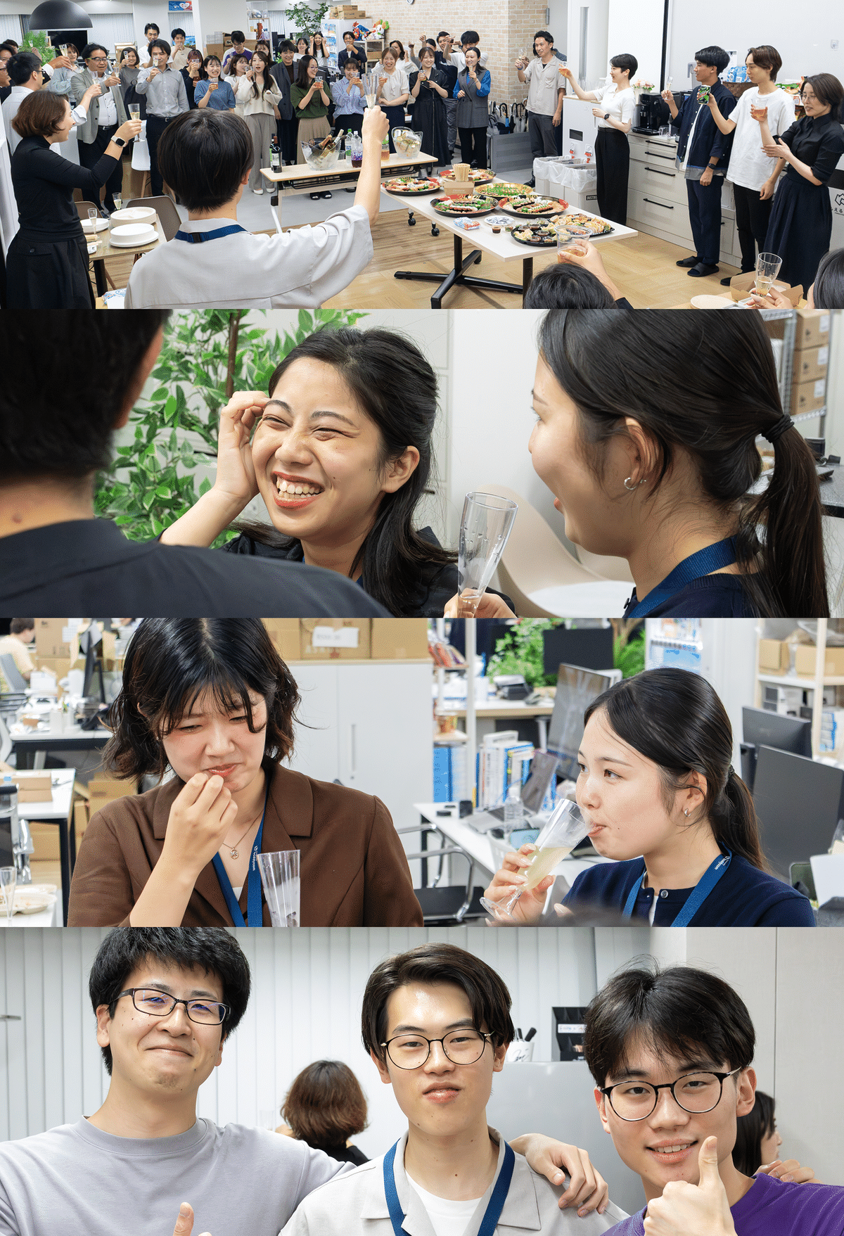 内定者同士の会話はもちろん、配属予定の先輩社員や他部署のメンバーとも積極的に話す姿が見られ、あっという間に打ち解けた雰囲気に。