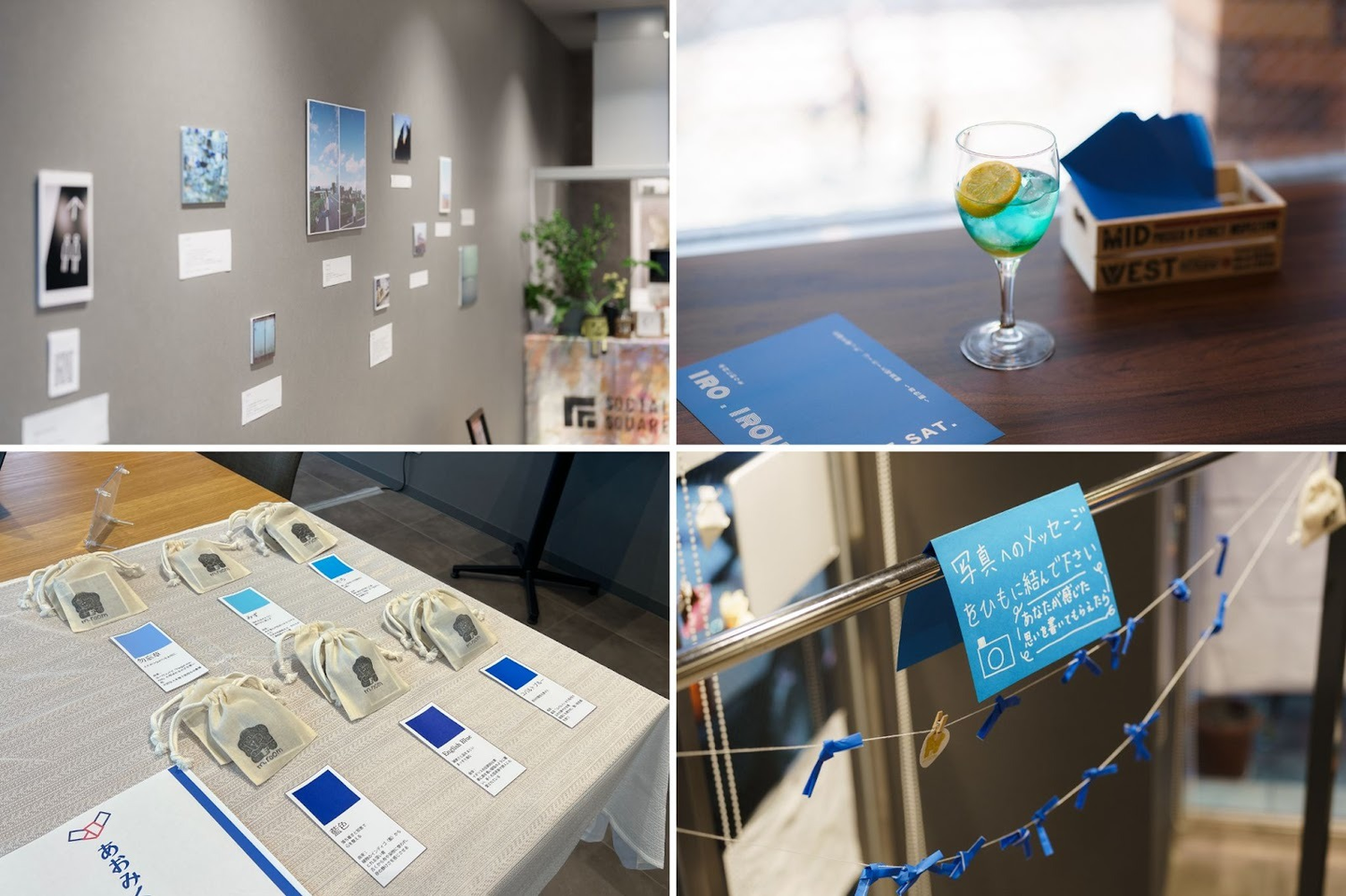2025年9月に開催された青色編では、ソーシャルスクエアの利用者や一般の方々から集まった写真を展示。青をイメージするコーヒーやドリンク、複数の青色から直感で選べるおみくじなどを企画しました。