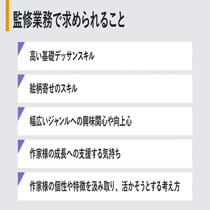 監修業務は指摘一辺倒にならず、作家様の個性を活かした上で、案件に合うクオリティに導けるかがポイントです!