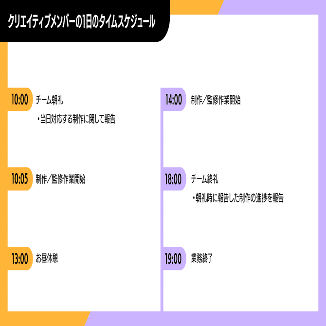 また、当社では「クリエイターの活躍の場所を見つける」ことを理念として掲げており、関わる方々の強みを最大化し、支えることにやりがいを感じられる方と一緒に働きたいと思っています。自分だけでなく、周囲の成果や関わるクリエイターの方の成長にも関心を向けられる方を求めております。