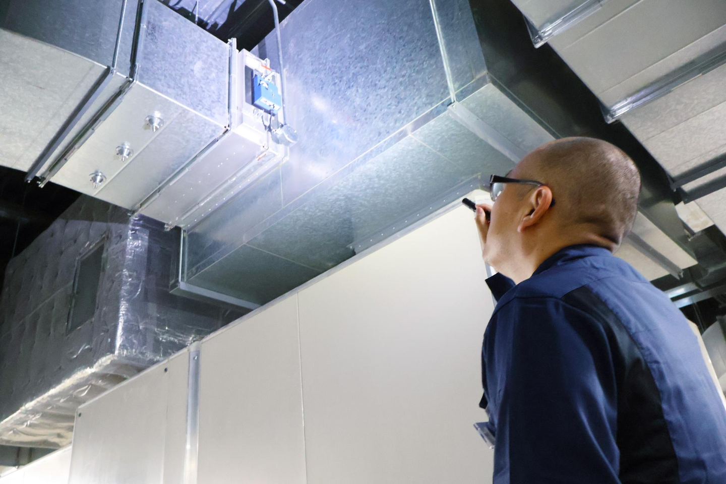 この業務は施設に点在しているあらゆる箇所の設備をまわり、実際に目視で確認しながら作業を進めていくため少し時間がかかります。(屋上に設置している設備を見に行ったりもします)