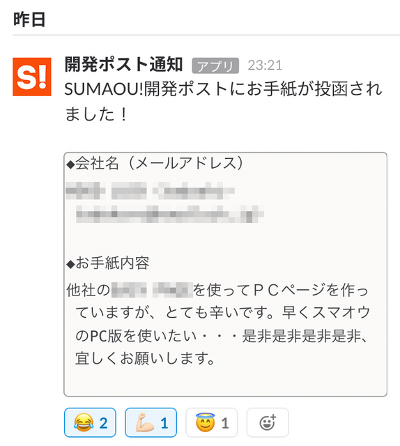 既存サービスSUMAOU!のご利用ユーザから、毎月のように新サービスへの期待&応援メッセージが届きます…!