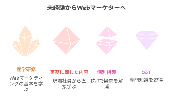 この仕組みは、業界未経験でも短期間で実務に対応できるよう設計されています。