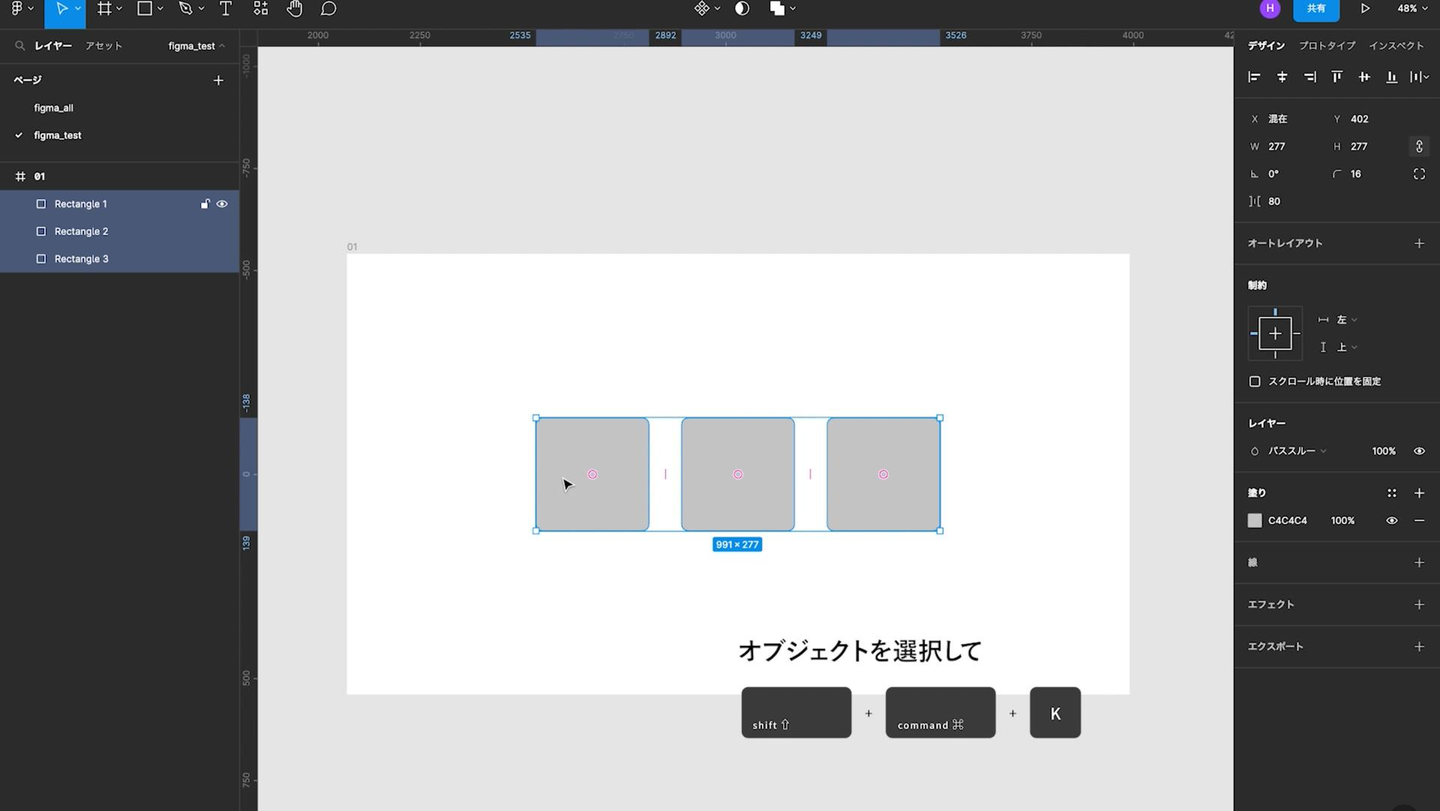 ① 画像を配置したいオブジェクトを選択して shift + command + K を同時に押す