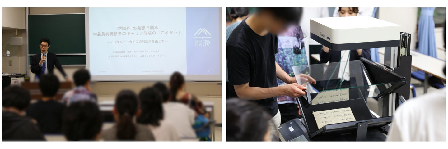 誠勝は、京都大学の学芸員養成課程で学ぶ大学生・大学院生に向けて、「"常識外"の発想で創る学芸員有資格者のキャリア形成の『これから』~デジタルアーカイブの利活用を通じて~」と題した産学連携特別講義を実施しました。