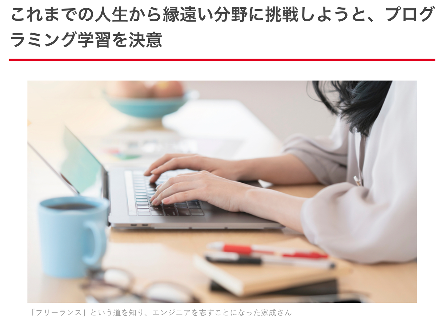 家成さん:よくYouTubeを観ていて「これからはプログラミングが必須になる」といった言葉を耳にしていたのですが、当時は「そうなんだ」と思ったくらいでした。会社を辞めて新しいことを始めようと考えたときに、せっかくやるなら自分から一番遠いところにある分野に挑戦しようと思い、調べ始めたのがきっかけでした。
