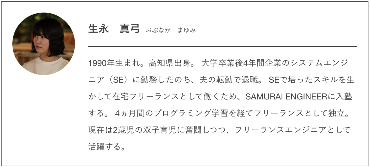なお、生永さんが受講を通じてフリーランスエンジニアへ独立するまでの経緯は次の動画でも紹介しているので、良ければご覧ください。