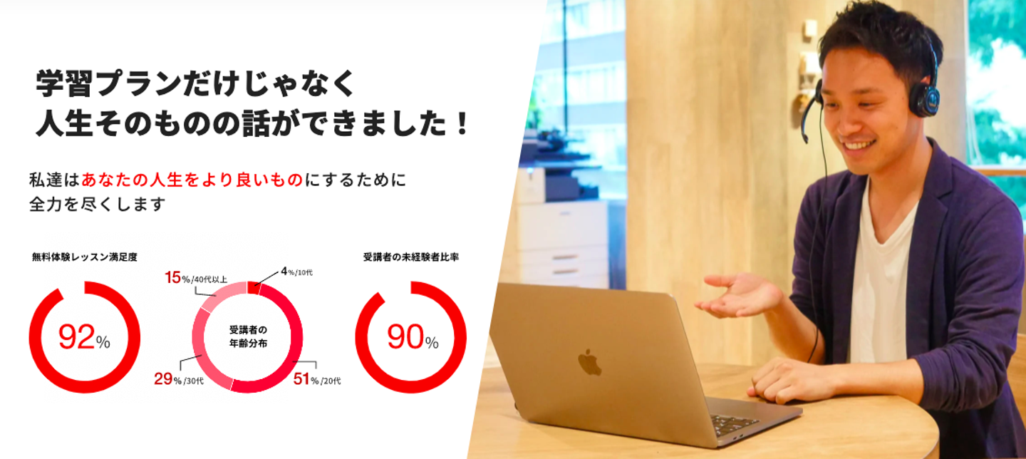 未経験でもご安心ください。無料学習相談をご利用される9割の方はプログラミング未経験です。まずは無料相談で、プロのコンサルタントにあなたの悩みや不安をお聞かせください!