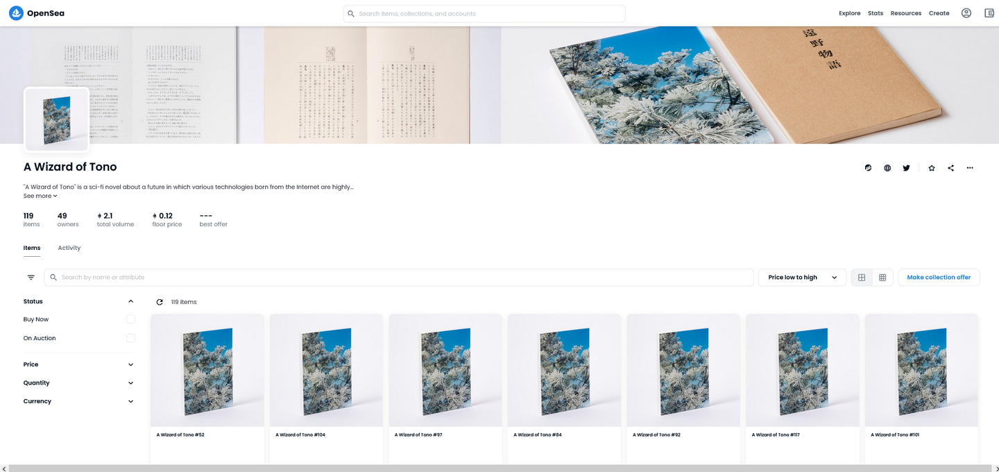 (https://opensea.io/collection/a-wizard-of-tonoより引用)