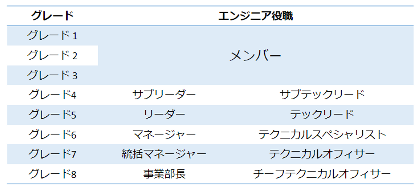 エンジニアの役職グレードを8段階に定義し、それぞれに求められるスキルや役割を定義しました。