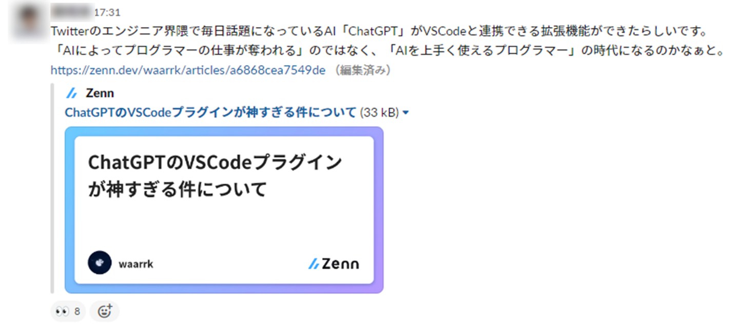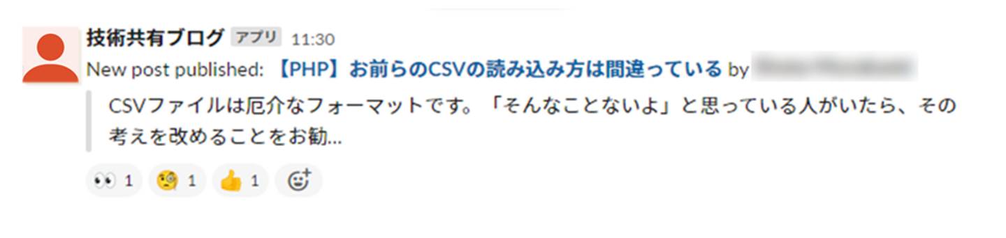 その他には社内テックブログが更新された場合にbotが更新を教えてくれます。社員はここで技術系のディスカッションが行われることも…!