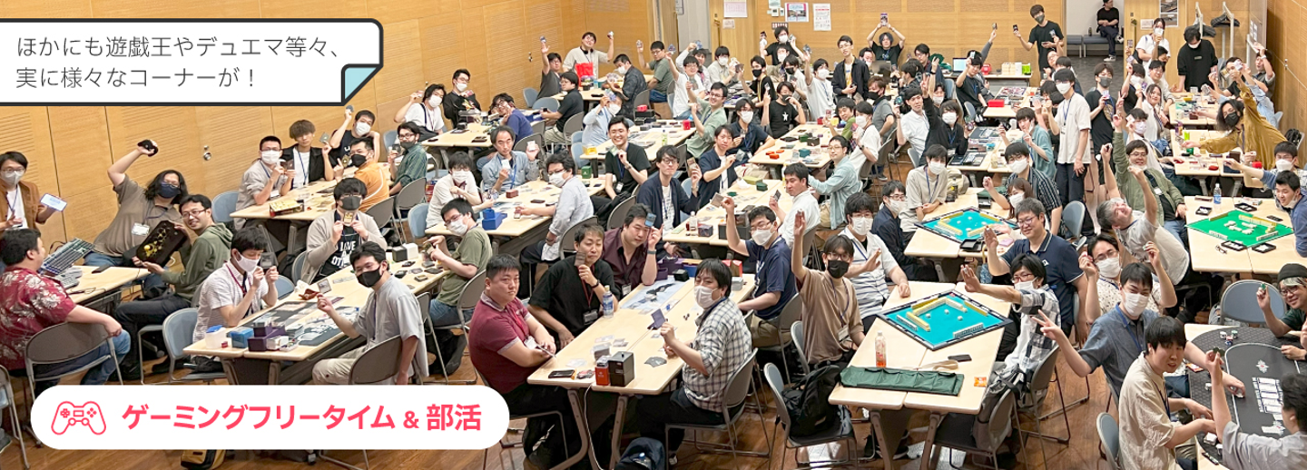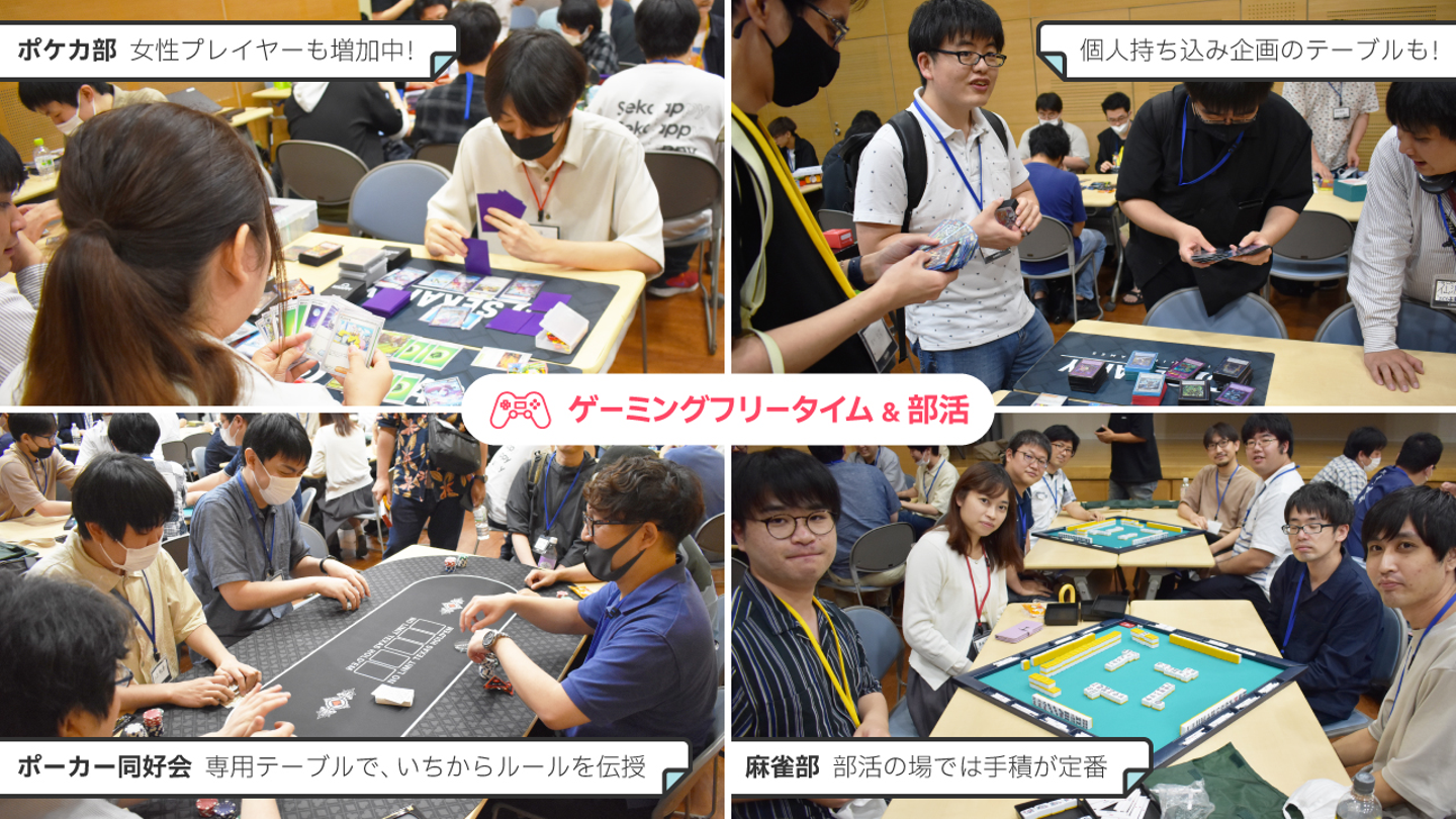 総じて企画の数が多く、部活動、同好会、有志の活動をすべてはご紹介できず、抜粋とさせていただきました。個別にはご紹介できなかった中では、定番の遊戯王やデュエマで盛り上がるグループもいれば、日本語版未発売のゲームに興じている感度の高い面々もいたり、等々、実に様々な交流コーナーがあった全社会でした。部活動や同好会にとっては「新歓」的な要素もあった社内イベントだったと思います。