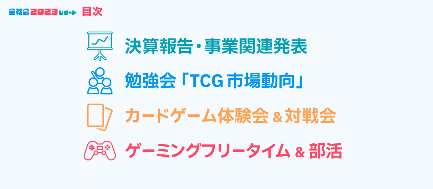 会社の業績発表や事業展望を聴き、勉強会に参加し、注目TCGタイトルをみんなで体験し、残る時間は思い思いのゲームや懇談で社内の仲間と交流する。Sekappy社員のそんな一日でした。