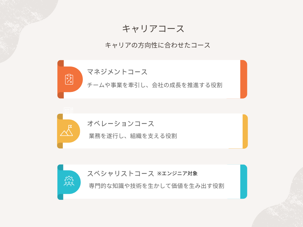 当社では、キャリアの方向性に合わせて 3つのキャリアコース を設けており、