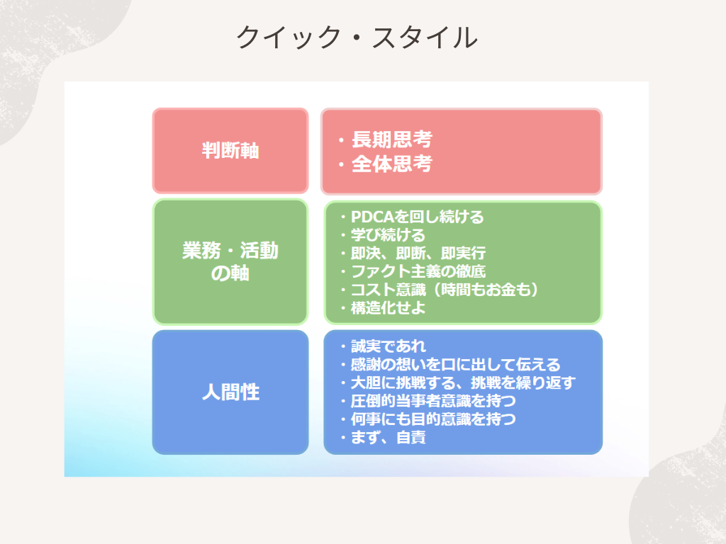 *クイック・スタイルとは、当社が掲げる行動指針。