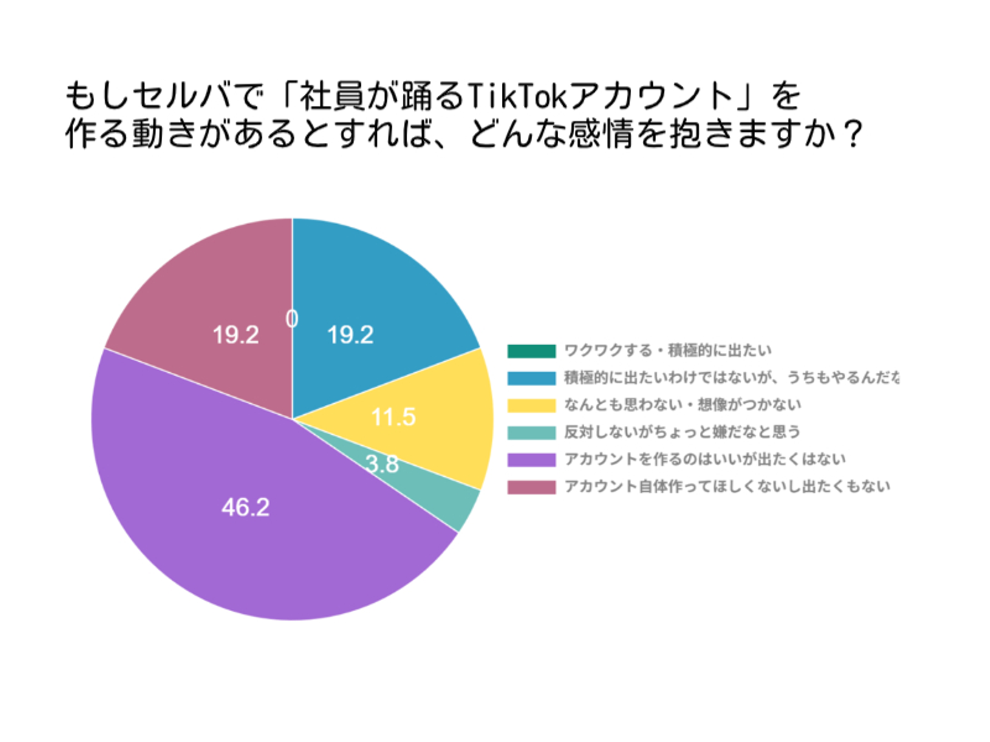 またもや禁断の質問、「もしセルバで“社員が踊るTikTokアカウント”を作る動きがあるとすれば、どんな感情を抱きますか?」と聞いてみました。