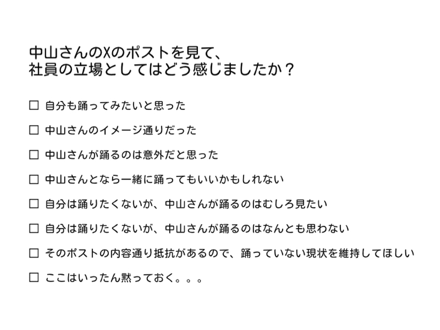 最後に「代表のXのポストを見て、社員の立場としてはどう感じましたか?」という質問を投げかけました。
