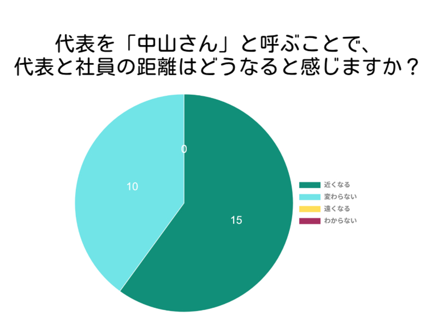「変わらない」と答えた人もいましたが、「遠くなる」や「わからない」といった回答がないことを考えると、社長と社員との距離感は良好なのではないかと考えられます。