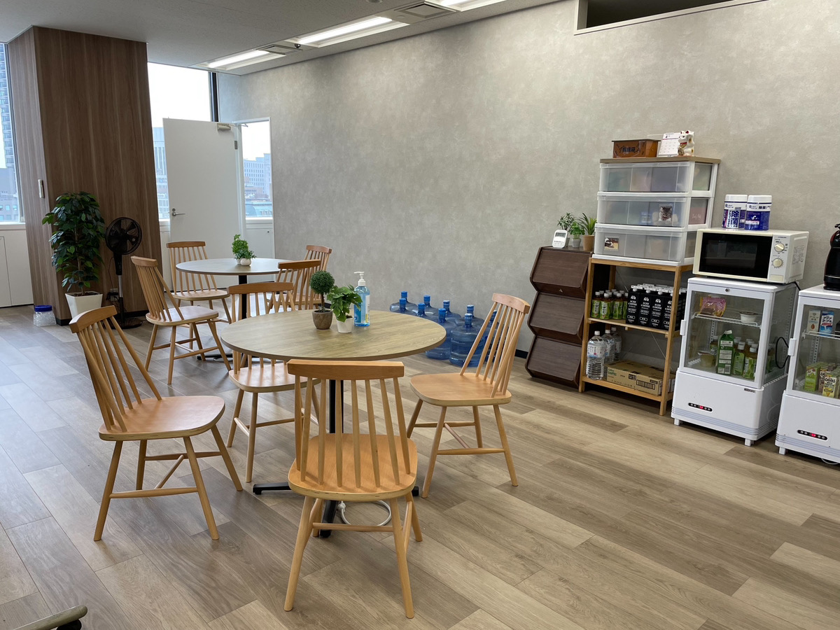 北浜周辺には美味しいレストランが多いので、外食する社員さんも多いですが、近くのレストランでお弁当を買って飲食スペースで食べている社員さんもいます。