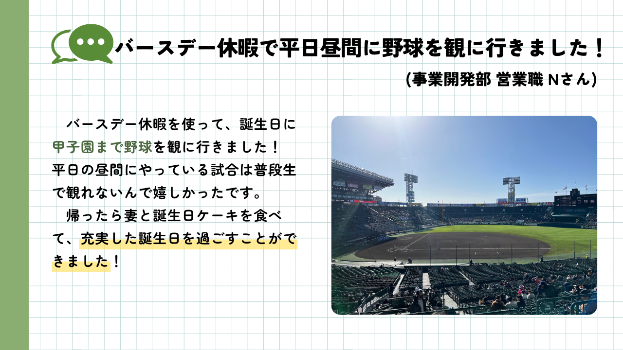 ただ、セルバは有給を毎年使い切る社員が多いので、あまりこの制度は使われていないのが実態です。(ちなみに2024年の有給取得率は100%でした。)