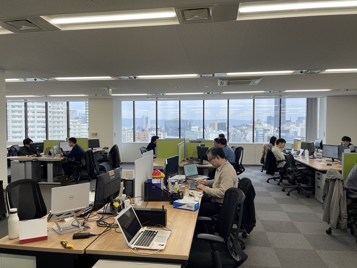 セルバのオフィスは大阪市北区西天満にあり、最寄りの北浜駅からは徒歩7分の距離です。去年(2024年)4月にオフィスを移転したばかりで、前のオフィスより倍くらい広くなりました。