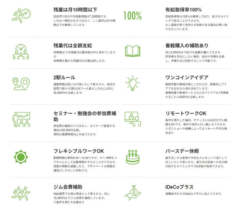 ▲セルバ採用サイトより。セルバの福利厚生一覧