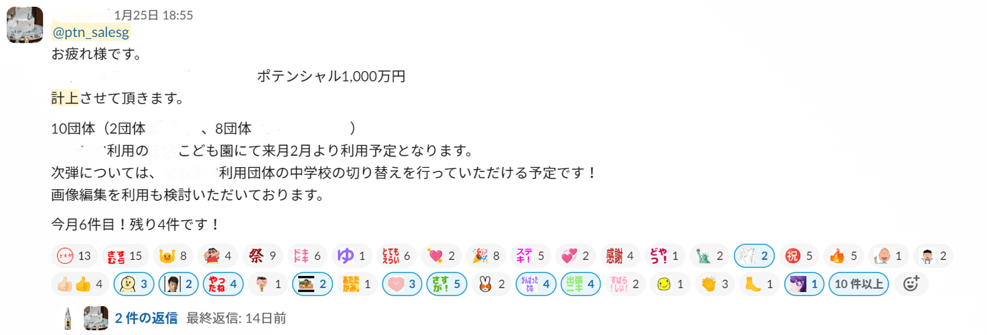▲メンバーの受注や成功体験はチーム内で賞賛する文化🎉