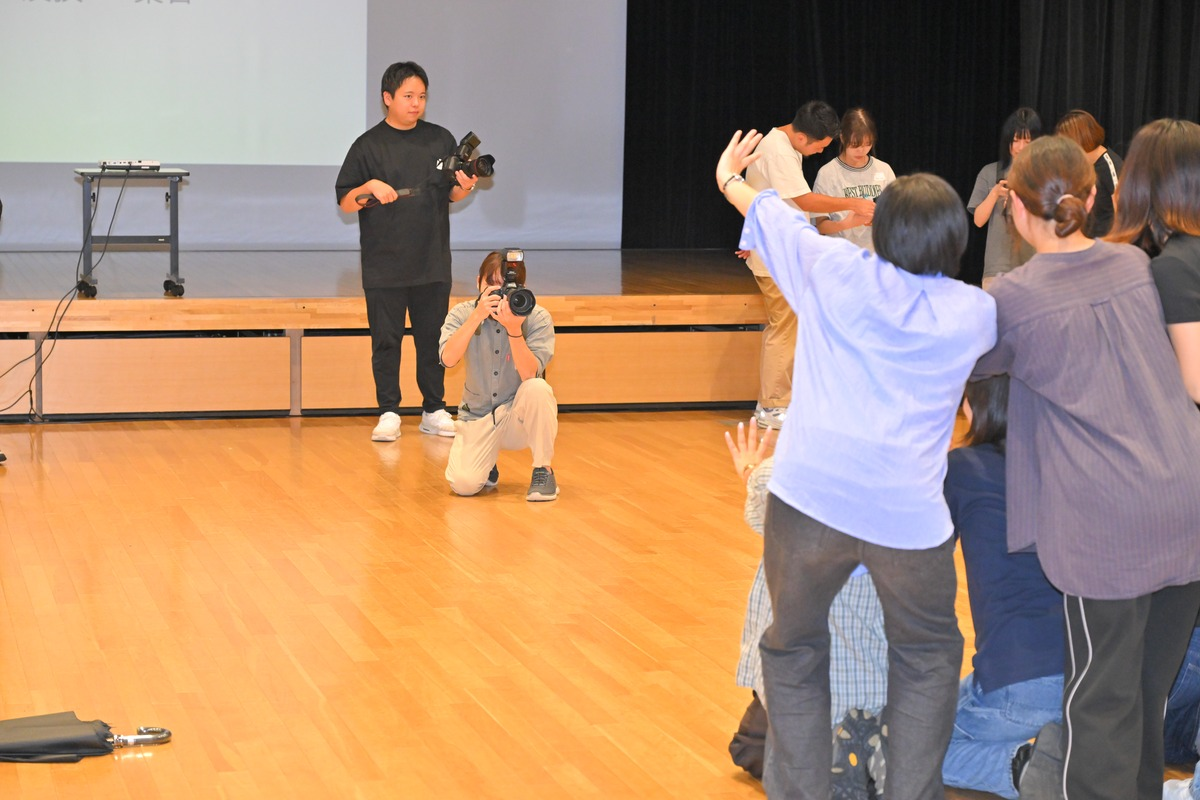 先輩の動きを見よう見まねしたり、先生や園児への声かけを真似してみたり、アドバイスをもとに試行錯誤しながら、午前中の撮影は終了です。