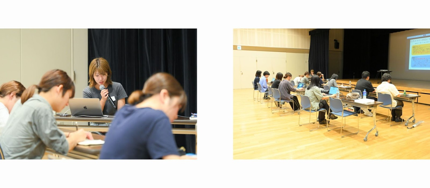 今年は、内定者と先輩社員が都内のホールに集まり、1日かけて座学や実技研修が行われました。