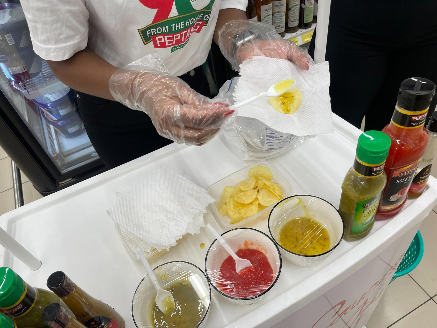 スーパーでこうやって試食してもらうのもマーチャンダイジング活動の一環