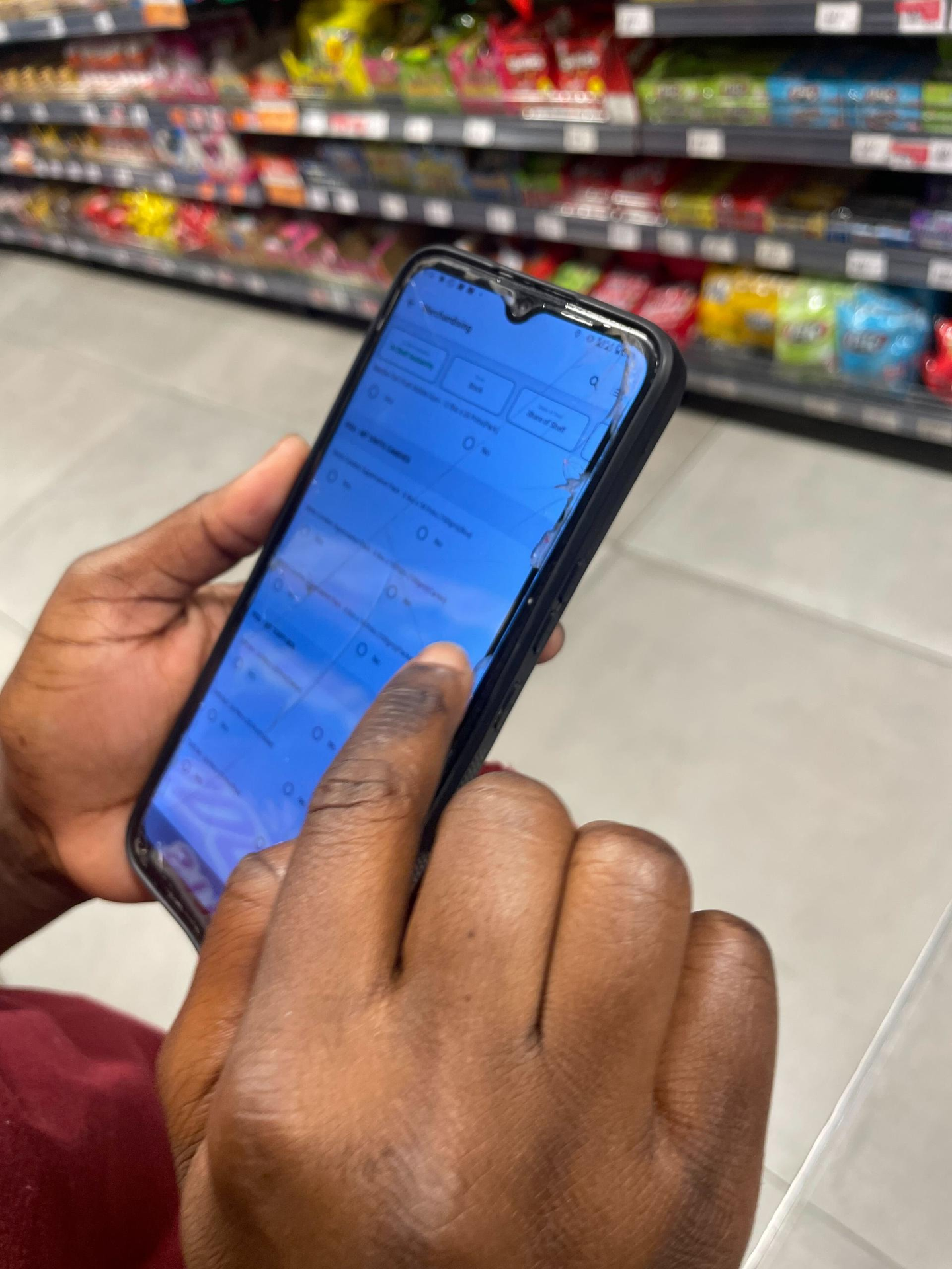 SENRIで決められた質問(棚に商品はありますか?何列ぐらい取ってますか?など)を回答して、各現場での棚の情報を入力しているところ。