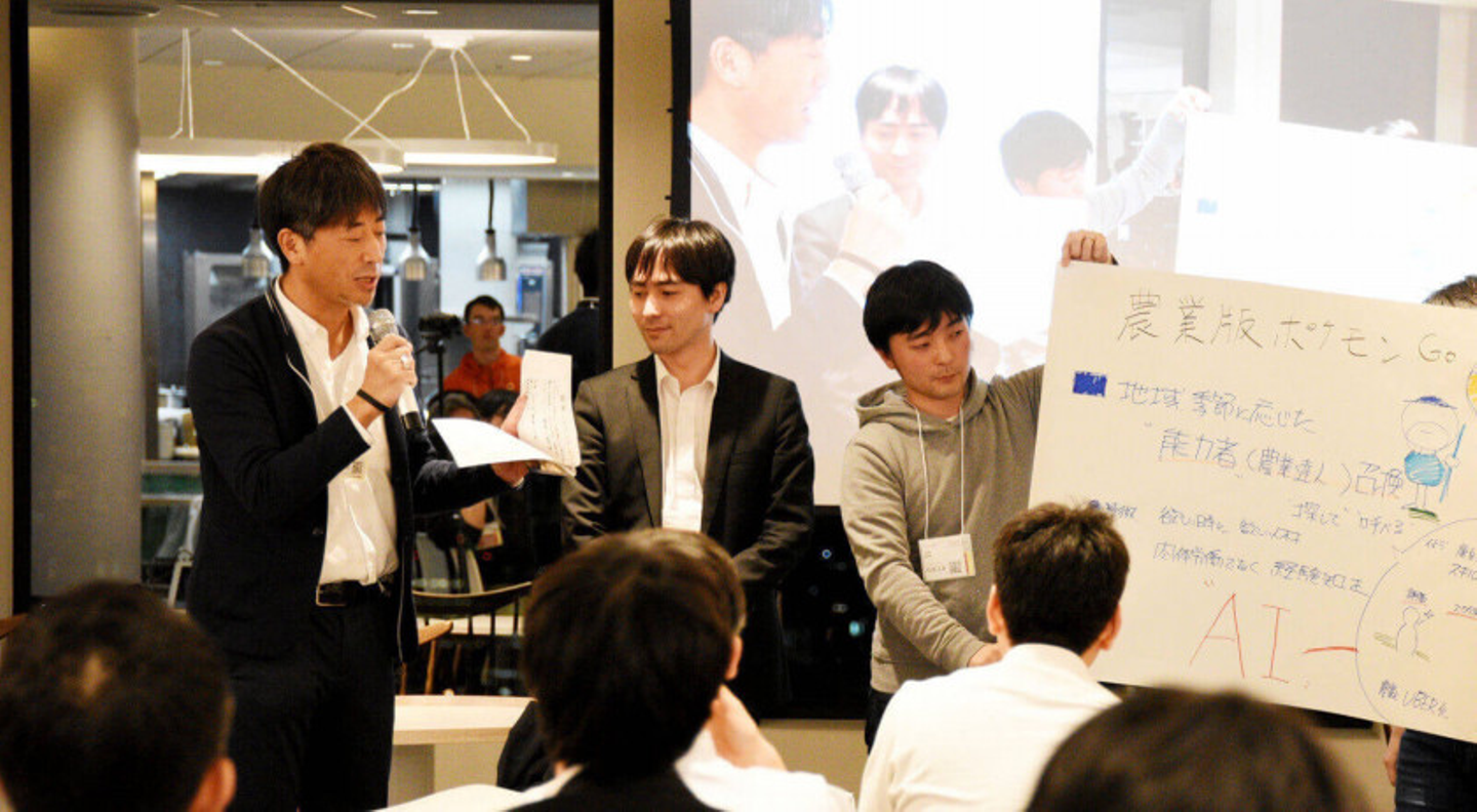 ビジネスモデルがしっかりしていたという点が評価されて、チームIの『農業版ポケモンGo』が受賞しました。季節や農作物にマッチした農業のプロにコンサルタントをしてもらうというアイディアで、コンサルタント前後の収穫量の違いなどでラベル付けし、AIでプロの評価とレコメンドができる仕組みです。人手不足という課題に応え、初めて農業に取り組む人でもアドバイスを受けられることで新規参入者のハードルを下げることができるという点も評価されました。