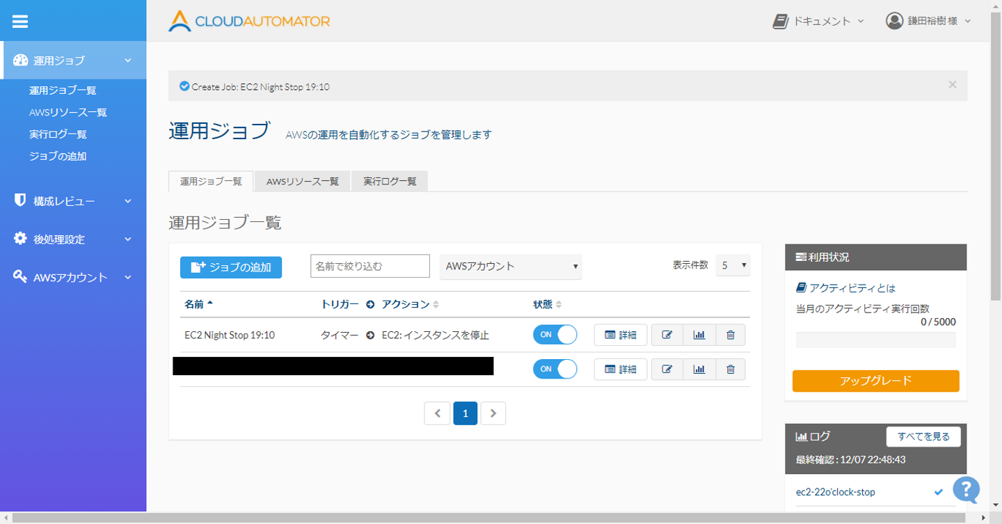 この設定にすることで、特定のタグが付いたインスタンスであれば、即座にこのCloud Automatorのジョブの対象になるので、作ったその日から、自動停止の対象にできます。素敵すぎる。