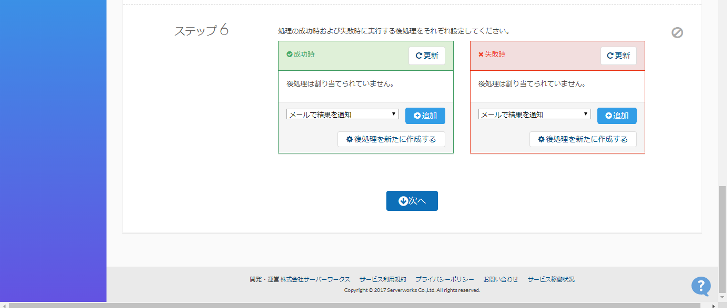 処理成功/失敗時のアクションを決める