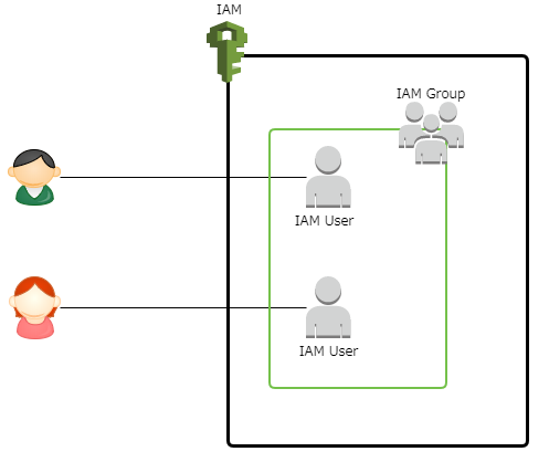 IAM User, IAM Group, IAM Policy。どれも、分かり易い概念ですね。