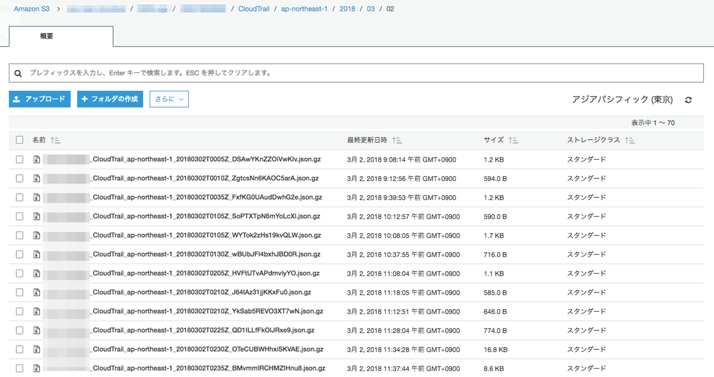 その欠点を補うために証跡情報を使います。 なお、証跡情報はS3バケットに下記のような感じで約5分間隔で保存されます。