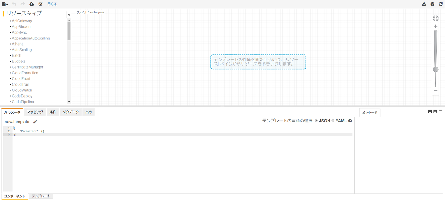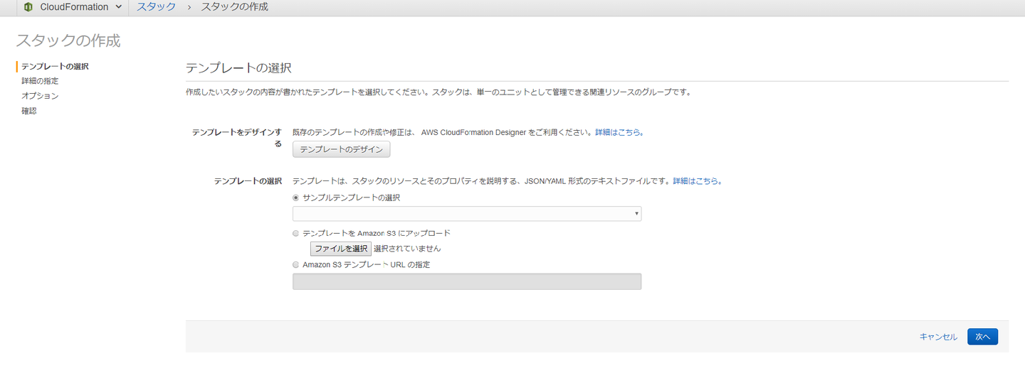 コンソールで”スタックの作成”から進むと、謎の”テンプレートをデザインする”の文字。