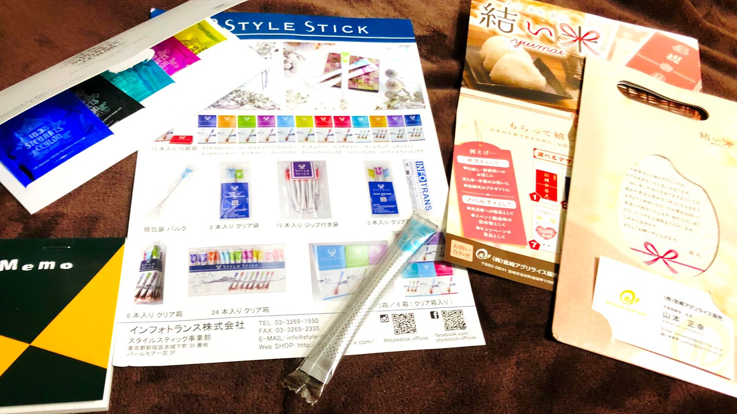 ノベルティ関連の展示を見て回る中でいただいたノベルティはこちら。