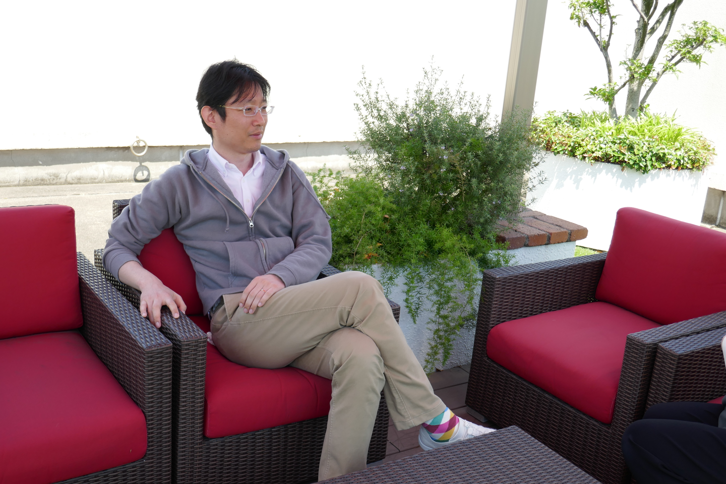(写真解説:屋上で休憩している中村さん)