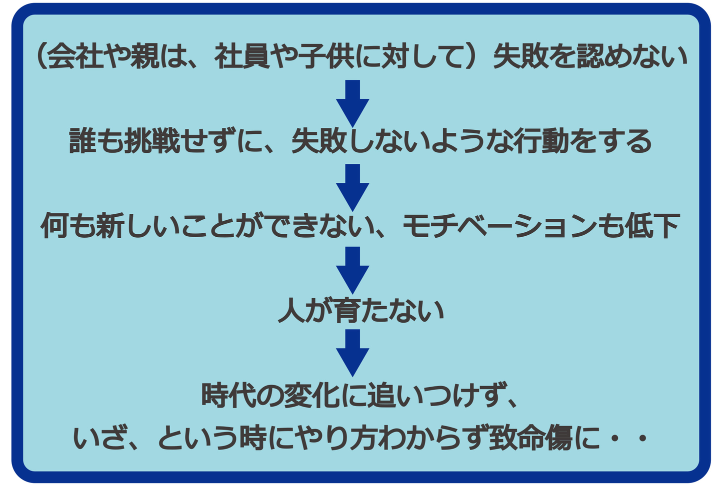 ①失敗を恐れチャレンジしないのは、成長しないし、何といってもつまらない。(主に個人側にとって)