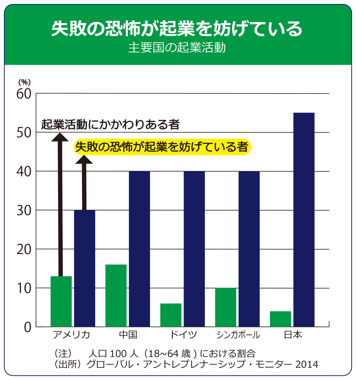 失敗を恐れることが起業率の低下に結び付いています。