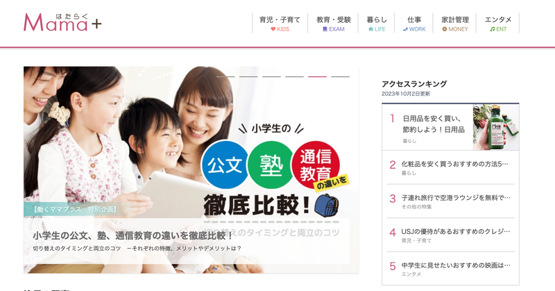 入社日翌日に提出した企画書のサイトが通り、念願の仕事と育児の両立を応援するサイトを立ち上げることができました。働くママ+というサイトです。